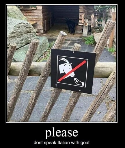 arrow-up142arrow-down1imagePlease don't speak Italian with goatlemmy.ml☆ Yσɠƚԋσʂ ☆@lemmy.ml to Memes@lemmy.mlEnglish · 29 days agomessage-square2linkfedilink