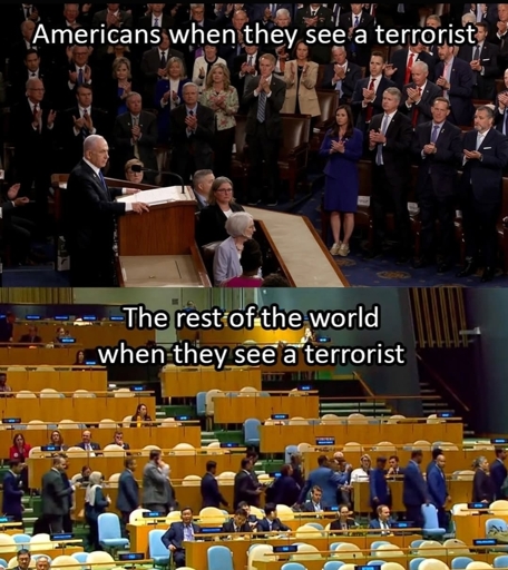 https://www.independent.co.uk/news/world/middle-east/netanyahu-un-speech-israel-gaza-b2834372.htmlThis dude is such a clown. THE CURSE -> Shows a bunch of countries that his country has been committing warcrimes against for decades.