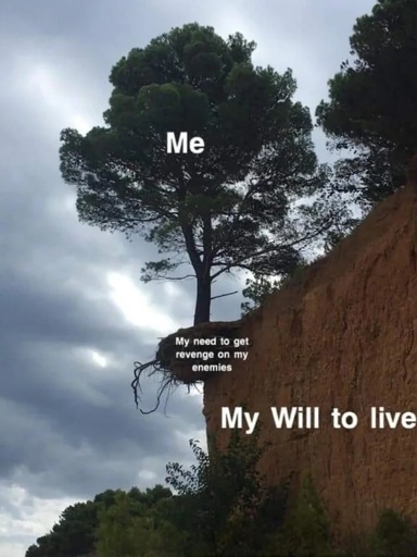 “my will to live” should be on the left, where there isnt anything. Where it is states that you have a ton of it, and much less desire for revenge.