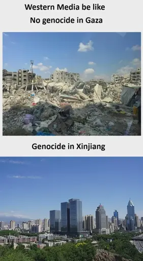 I mean genocide doesnt concern buildings. There is a war in Gaza and not in Xinjiang. And there is many stages in Genocide. Palestinians are being killed nonindustrially and being displaced. Advanced, but not maxed-out genocide. Claims about Xinjiang say they are being forcefully sterilzed, and cultural leaders are being detained and tortured. I believe victims first and foremost.