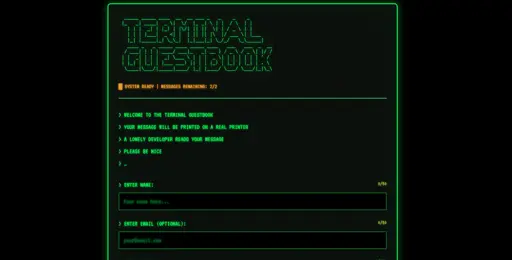 I saw this idea somewhere else and I wanted to build it for myself because I was fascinated by it. So I did. You can enter your nick name, a message (optional email address and image) and send it to me. It will print immediately and I will see your message. There’s also an easter egg that you can discover. :)