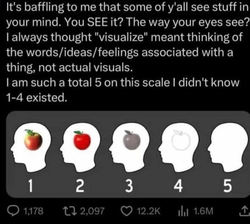 Isn’t 5 is called Aphantasia ? To be unable to visualize something in the mind?