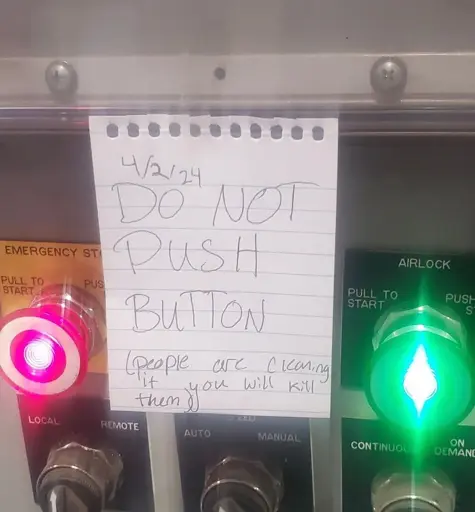 But yeah, and for anyone else, repairs can wind up being more complicated than anticipated, parts arrive late, etc. It’s not uncommon for these to be in place for weeks sometimes when say, electrical starts something, but then plumbing needs to finish whatever before the pump motor hookup can be complete. Before you know it it’s 2 weeks later, electrical had a bunch of other jobs. The LOTO makes sure they come and inspect before unlocking rather than go “yeahhhh I’m pretty sure we left that ready to turn on, go for it” plus making sure no other work got screwed up (like a wire conduit getting drilled into by plumbing).