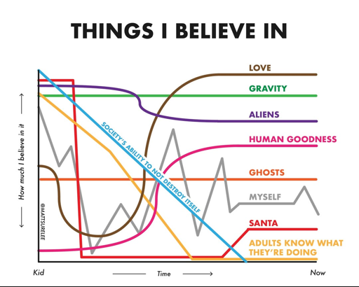 Your belief in Santa went up? I mean, as long as it helps you avoid the “naughty list”, I guess that’s alright, lol.