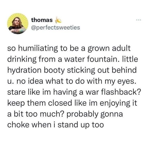 minus-squareNannerBanner@literature.cafelinkfedilinkarrow-up8·18 days agoAre they the ‘touch the handle, gentle arc across’ kind, or the ‘sensor begins smooth laminar flow stream into bottle’ kind? Because the first should be banned, ugh (I mean, not really, I still use the ones at the park), and the second is amazing.