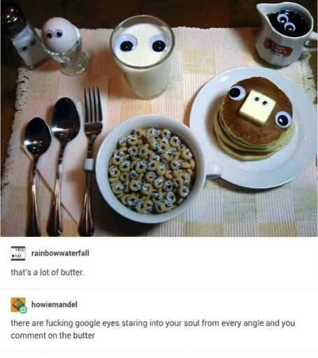 minus-squareDanarchy@lemmy.nzlinkfedilinkarrow-up3·1 day agoGoogly eyes will scare you once but high cholesterol will haunt u 4 lyfe