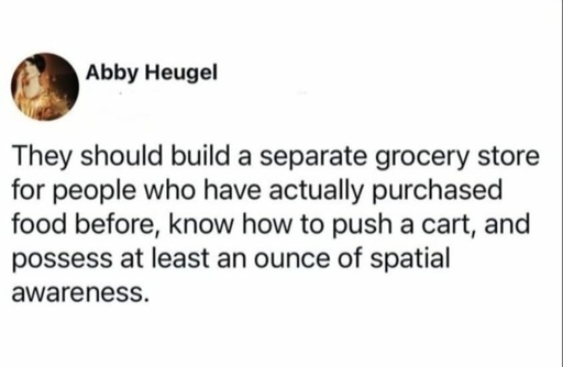The fucking floor displays in aisles that create chokepoints, and then aisles that have a bunch of popular shit all together creating a traffic jam. And don’t get me started on the lack of manned checkout lines anymore. Self-checkout is adequate as express lanes (i.e. limited number of items, limited produce, no alcohol) but sucks if you are buying more.