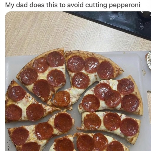 That’s not to avoid cutting pepperoni. There was no reason to shape the 2 pieces at the top like that… other than being a pizza sadist.