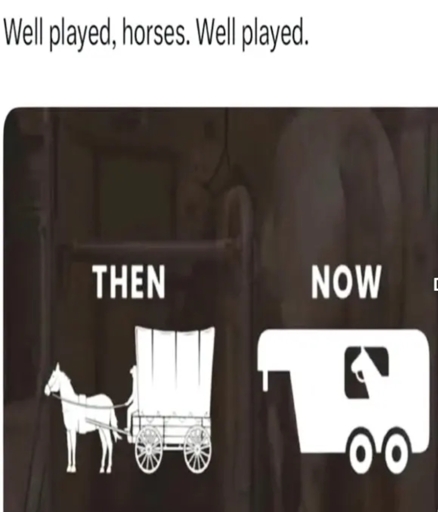 minus-squareDanarchy@lemmy.nzlinkfedilinkarrow-up36·15 days agoOne horse pulls the other in a trailer and then they switch when front horse gets tired resulting in infinite horse