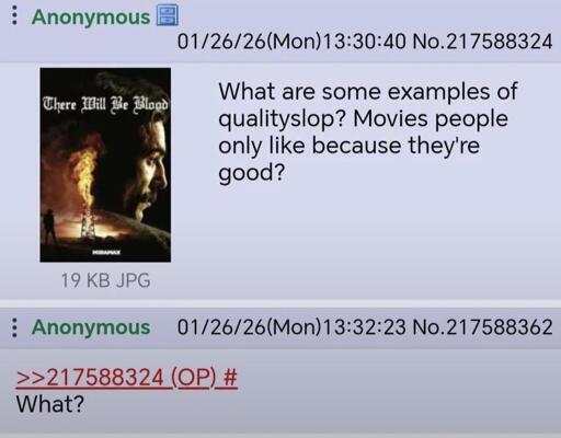 I think I know what OOP means here. Films that people only like because they’re “good movies.”