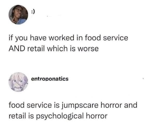 minus-squareKaRunChiy@fedia.iolinkfedilinkarrow-up11·12 days agoWalmart gave me constant illness and depression, fast food has just given me grey hairs and chest pain