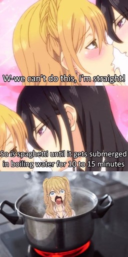 I’m assuming the original was “so is spaghetti until it gets hot and wet”.