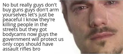 Cops shouldn’t have assault rifles either, they’re not the military. I find the second amendment so fucking dumb. It’s to rise up against a tyrannical government. But since you have it, precisely now is the time to use it. Helloooow? Why don’t you use it? You have a tyrannical government full of pedophiles. All those decades full of innocent deaths, all so you can keep your precious second amendment, just in case you reach a point you are in now. Well, go ahaid then, prove all those deaths were worth it. Bunch of self-centered uneducated hypocrites.