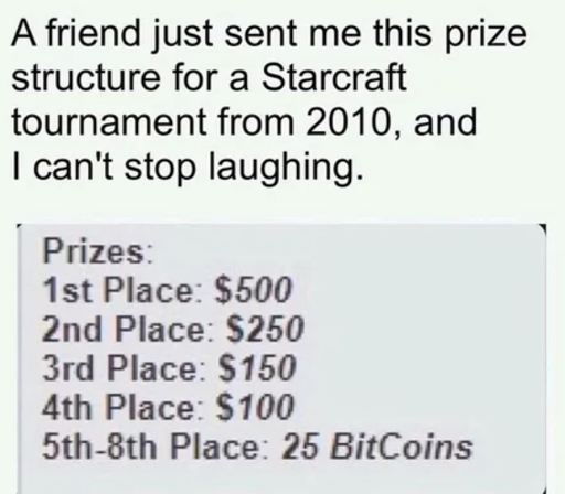minus-squarealekwithak@lemmy.worldlinkfedilinkarrow-up14·1 month agoAt the current price 25 Bitcoin would be equal to $1,593,450. At its peak a few months ago it would have been worth over $3 million. In fact it didn’t take long after 2010 for the Bitcoin prize to be worth more than the cash prize.