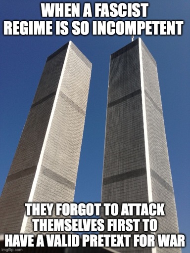 Since we’re talking about the twin towers and provocations to start wars, I want to post this meme (even though it’s got Charlie Kirk in it)