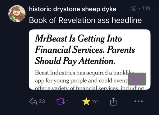sveltecider@lemmy.ca to Lemmy Shitpost@lemmy.world · 13 days agoend times are herelemmy.caimagemessage-square27linkfedilinkarrow-up1509arrow-down15