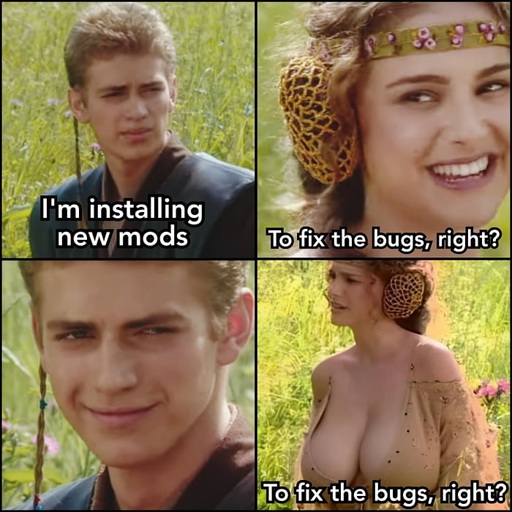I like when you encounter a mod you forgot about and it makes the cutscene hilarious.