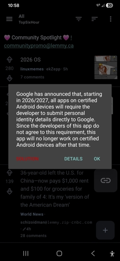 Correct. It’ll be a new bunch of new steps, and would be forced to wait 24 hours to do the actual install, but otherwise sideloading unverified apps will still be possible through the advanced flow steps. So Jerboa and/or other apps from unverified accounts can still be installed. I do wonder how that affects the other app repos like F-Droid, like I guess F-Droid would need to be aware that the new advanced flow steps are active when attempting to do app installs.