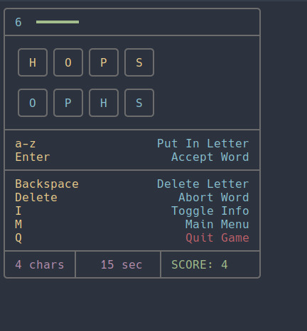 christos@lemmy.world to Open Source@lemmy.mlEnglish · 9 months agodeshuffle, word puzzle against the clock (Bash)plus-squarelemmy.worldimagemessage-square0linkfedilinkarrow-up11arrow-down10